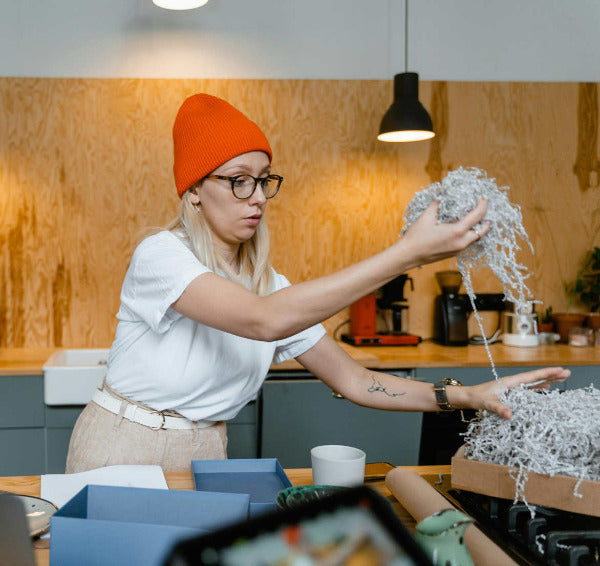 Keskkonnasõbralik valik – taaskasutatavad paberi laastud jätkusuutliku pakendi jaoks.